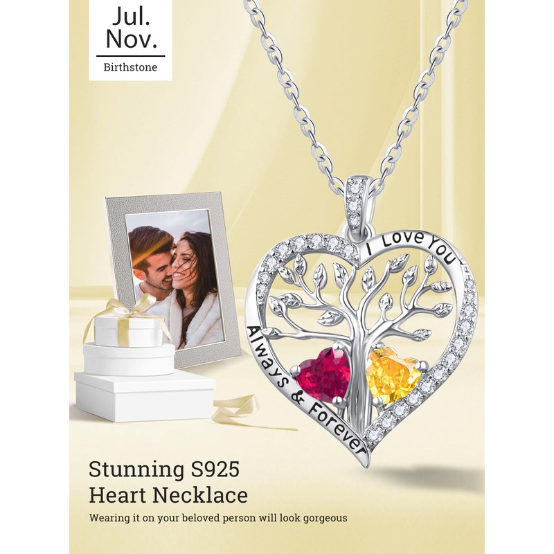 Tree of Life Necklace Wedding Anniversary Pendant Gift for Wife Her July and November Birthstone Jewellery Ruby and Citrine Necklaces for Women
