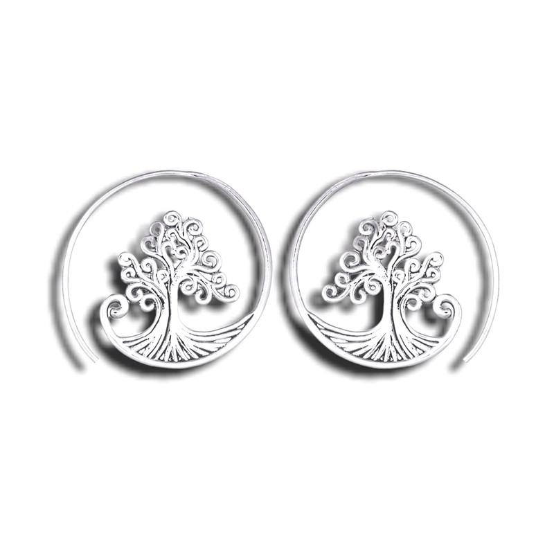 Tree of Life Spiral Earrings - 925 Sterling Silver - Non-Slip - Comfortable to Wear