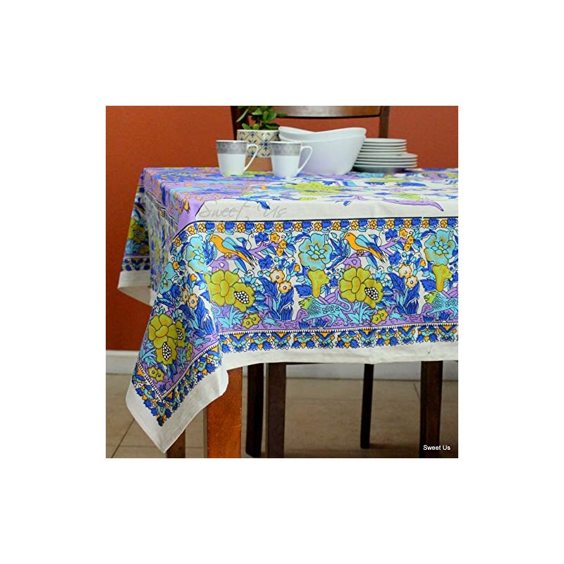 Tree of Life Tablecloth for Square Tables, Cotton Floral Kitchen Dining Table Cloth, Linen Blue Lavender, Table Cover for Indoors and Outdoors (Purple Green, 72 x 72 in)