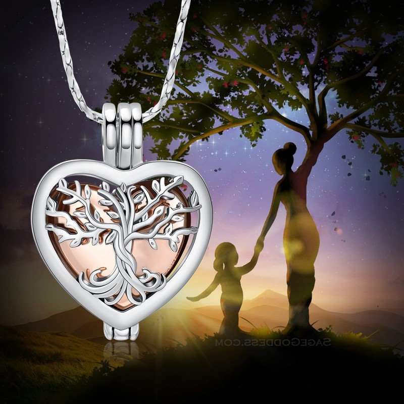 Tree of Life Urn Necklaces for Ashes Heart Shape Cremation Jewelry Memorial Keepsake Jewelry Gifts for Women Men Memorial Lockets Ashes Holder for Pet (Silver-rose)