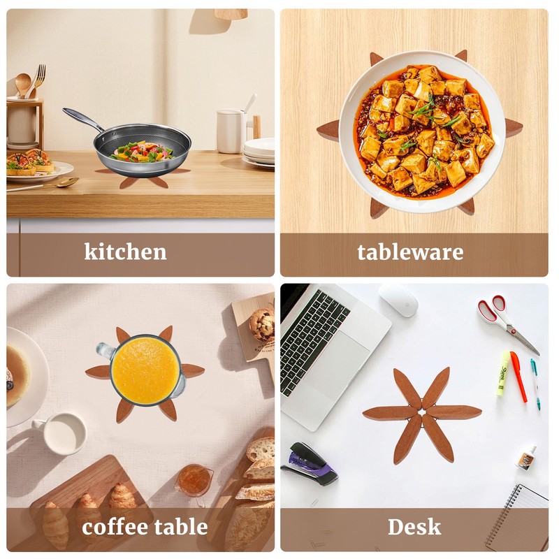 - 【Multi-functional use】 The hot dish wooden tripod unfolds 7.8 inches and can hold cups, bowls, plates, teapots, frying pans, hot pots, etc. It can be used on countertops of different textures such as glass, marble, and wood. It can be placed in the kitchen, living room, dining room, and other scenes