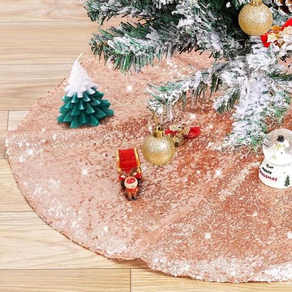 Tree Skirt 48 Inch Sequin Rose Gold Tree Skirt Christmas Decorations