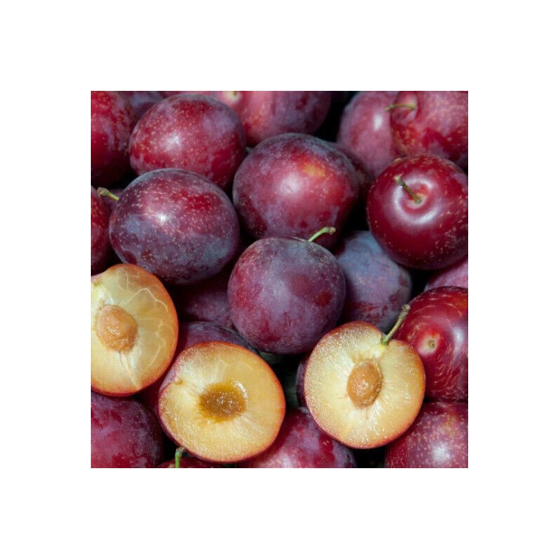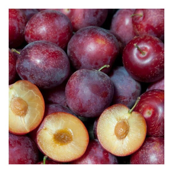 Skin is bright red over a sweet, juicy, yellow flesh. Combines the sweetness of a cherry with the summer fresh taste of plums.