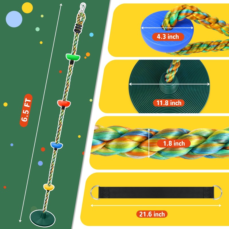 - 【STRENGTH AND BALANCE BUILDER】 A great introduction to a challenging and fun fitness sport, our rope climber includes a circular rubber bottom disc kids can stand or sit on to swing, platforms to help them climb, and lots of rope to grab and climb without help. Balancing on the rope swing is an excellent way to develop your child's core and muscle strength.