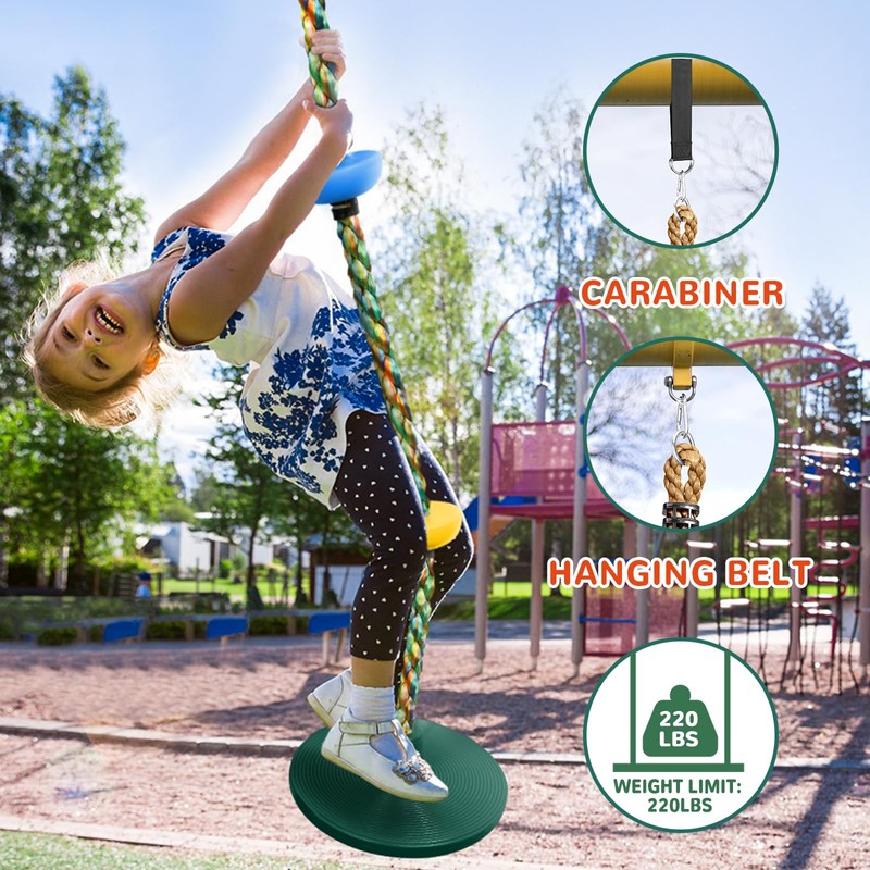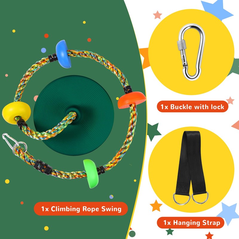 Tree Swing Climbing Rope, Heavy Duty Swing Seat Replacement for Kids Disc Rope Climbing Swing Seat for Tree Indoor Outdoor Playground Swing Set Accessories(Green)