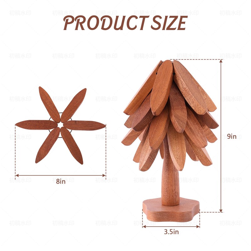 - Visually Appealing and Practical: Wooden trivets for hot dishes feature a charming tree shaped design, adding a festive vibe to kitchen decor. Compact and easy to store, wooden tree trivet set keep the counter neat while working perfectly under hot pots and pans. When not in use, place trivet tree back on the stand for a tidy look. Ideal for kitchens needing both functionality and style