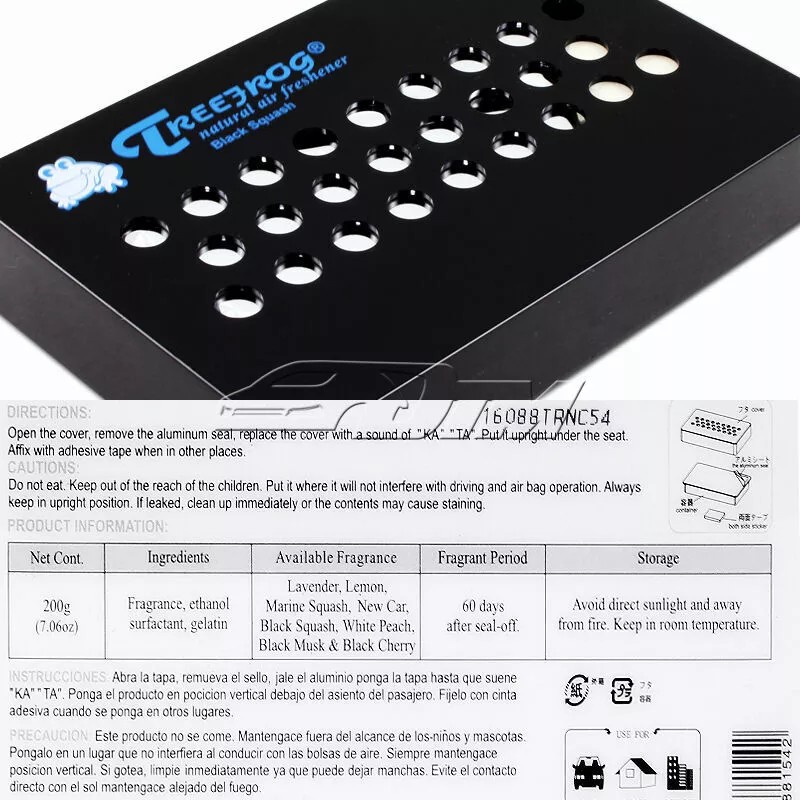 TreeFrog 6 PACK TreeFrog Natural Xtreme Fresh Box Car Air Freshener JDM - Black Squash