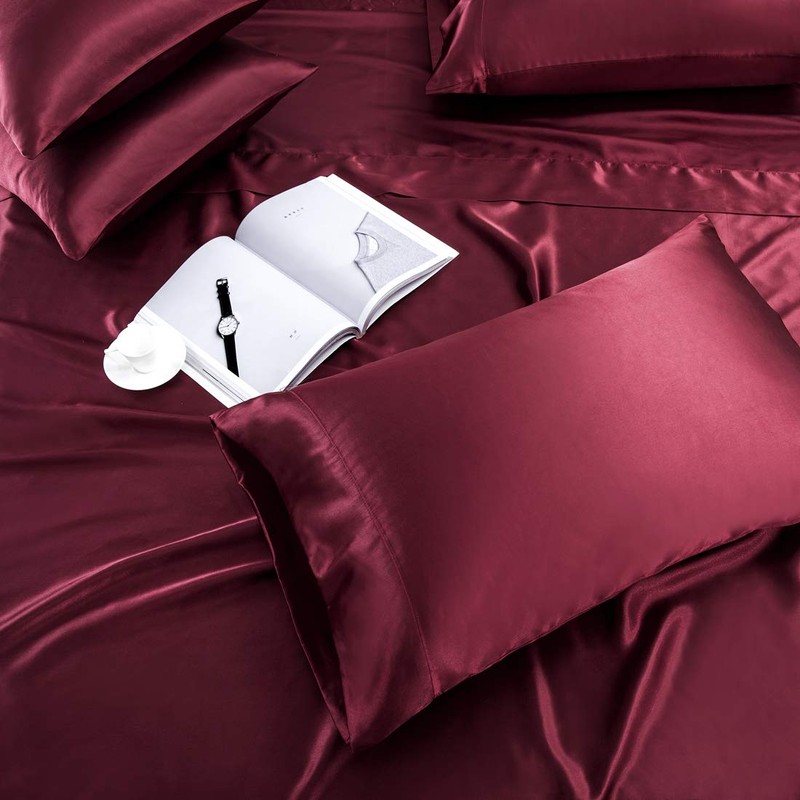 - Mystery Of Protecting Hair & Beauty Skin: Do you wake up with crazy bed hair? Burgundy Satin Sheets are soft and smooth like silk. Prevents friction in your hair from causing breakage and tangles. Sleeping on soft silky sheet sets can reduce wrinkles on the skin and keep the skin soft and moisturized to beautify your face. TREELY satin sheet set will definitely surprise you and fall in love with it!