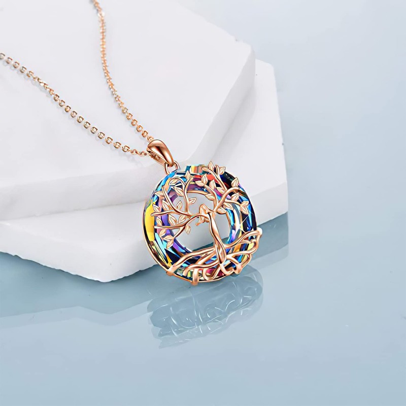 TREENEST Collar de Árbol de la Vida y Mujer con Colgante, Joyería de Árbol de la Vida con Cristal, Joyería para Madre y Mujeres, Collares de Cristal Joyería para Mujeres,20021RG