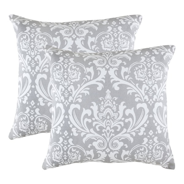 TreeWool, (2 Pack Cushion Covers Damask Accent in Cotton Canvas (40 x 40 cm, Silver Grey)