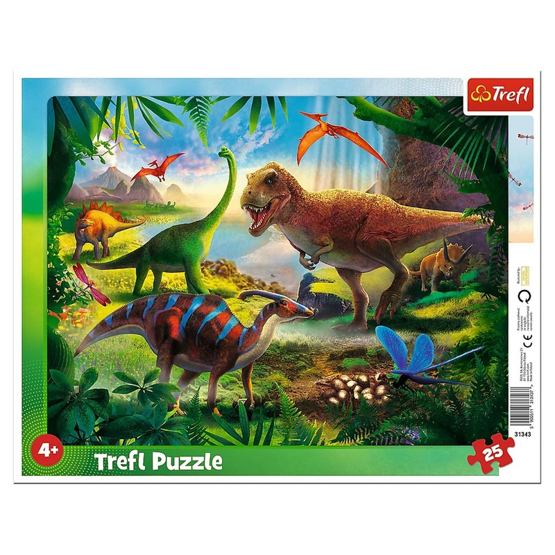 Trefl, 25 Piece Dinosaur Frame Jigsaw Puzzle with Underlay for Ages 4+