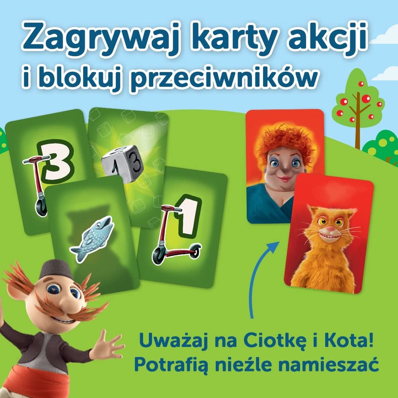 • Includes colourful board, 4 fairy tale heroes of the Treflik family, 20 pizza chips, 20 address cards, 36 action cards, dice and instructions