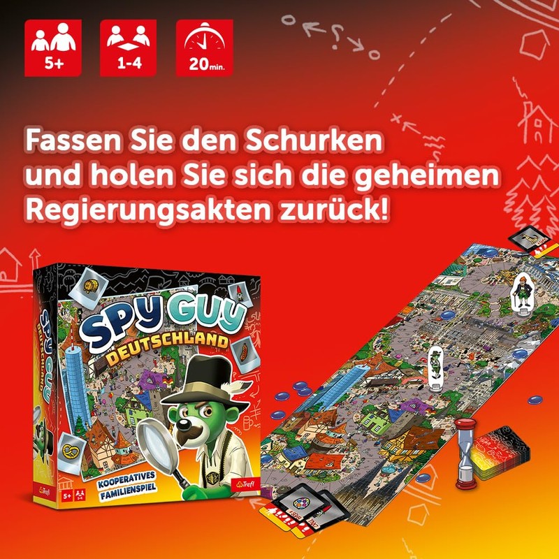 - Spy Guy is a cooperative detective game with simple rules anchored in the world of drawn German monuments, symbols and famous people