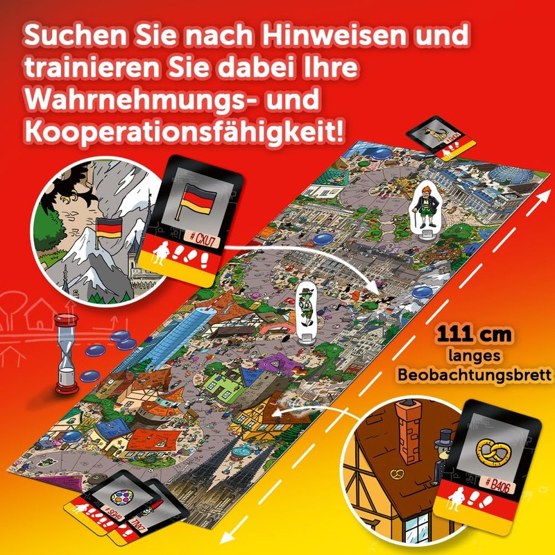 - Here a sharp eye and close cooperation of the players count! Check if you manage to find so many clues to catch the criminal on a game board over one metre