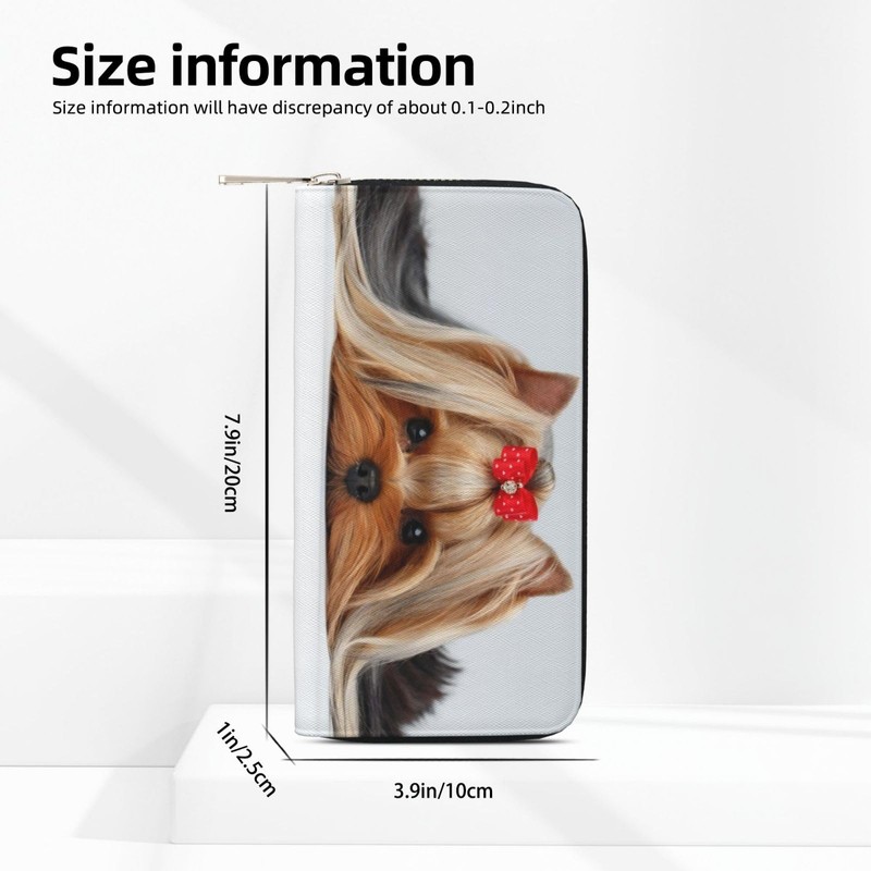 TREJUKY Great Pyrenees cute Dog Wallet for Men Women Long Clutch Zip Travel Leather Coin Purse Credit Card Holder Handbag, Lying Yorkshire Terrier With Cute Ribbon Yorkie Love Portrait Of A Dog, One