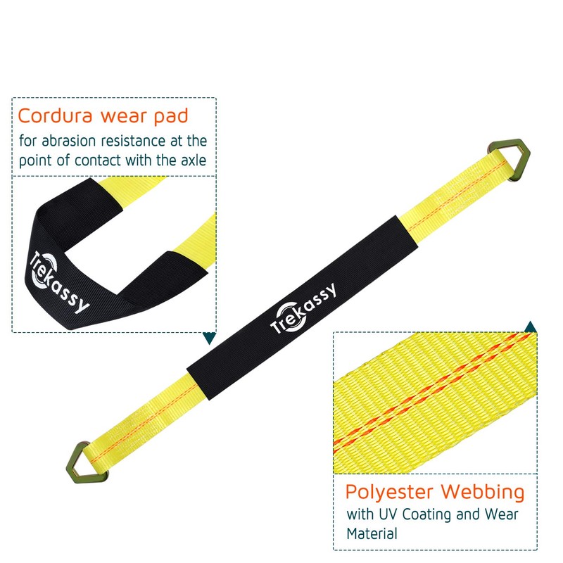 - High Quality- Each vehicle tie down axle strap has 3,333lbs working load limit and 10,000lbs break strength and with a protective sleeve resisting abrasion.