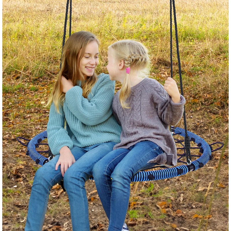 - Sturdy large saucer swing: Large 40" steel frame, Weight rated to 750lbs, this tree swing is large and sturdy enough to provide fun for the whole family