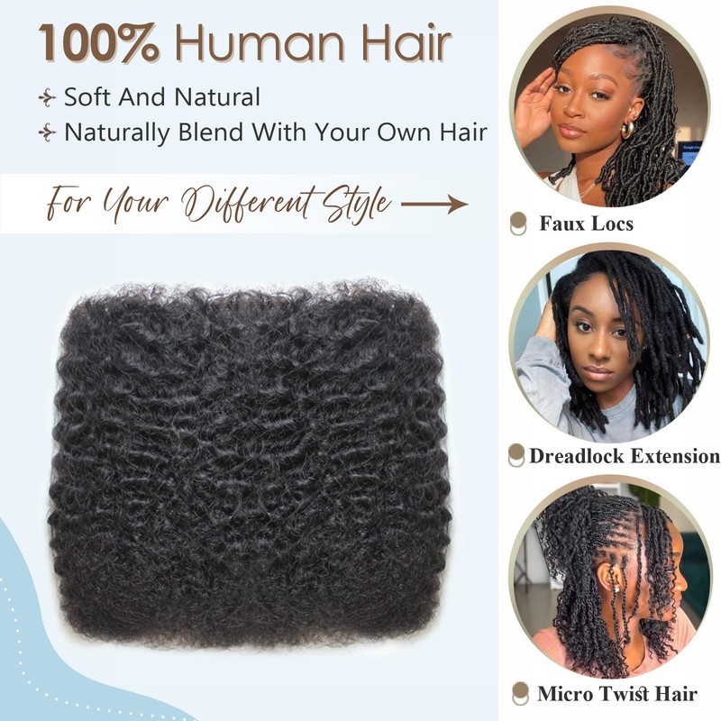 - 【Fashion Style】Afro Kinky-Curly Human Hair Bundles is Easy to Separate and Install.You Can Make Different Hairstyles According to Your Own Preferences,Such As Dreadlock Extensions,Faux Locs,Micro Locs,Butterfly Locs,Mini Twists,Box Braids and More Curly Braiding Hair Styles.