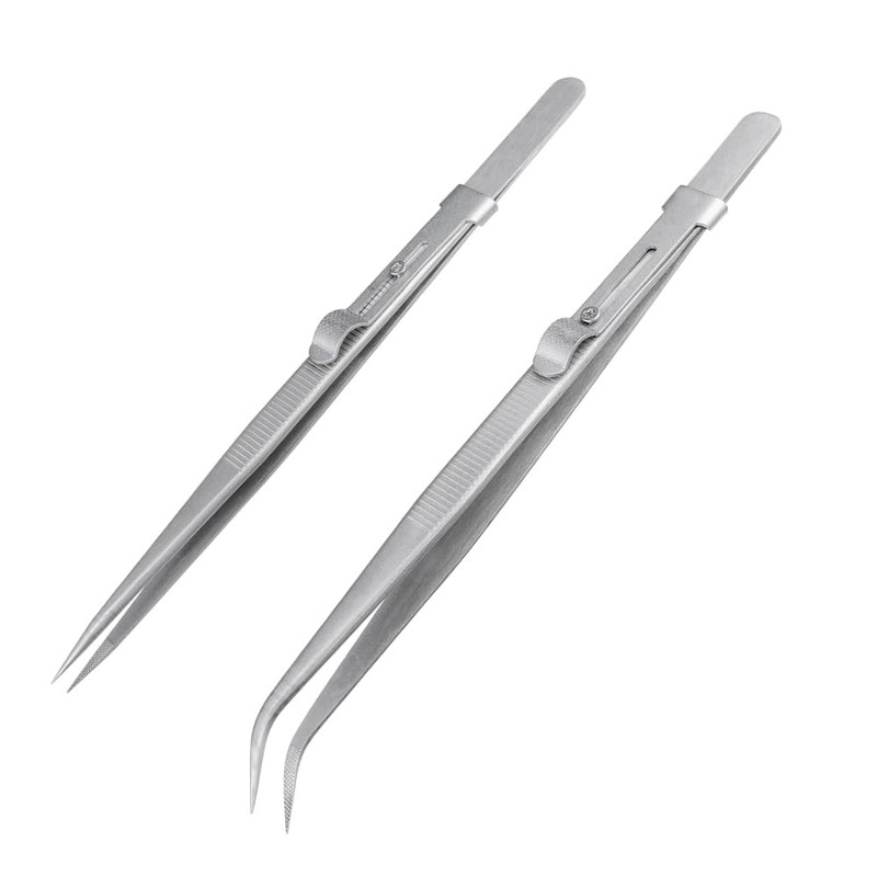 Treki 2 x 16 cm lockable tweezers with serrated tip, long tweezers for model ...
