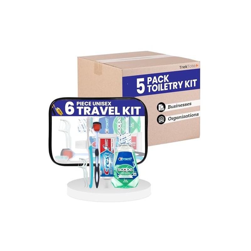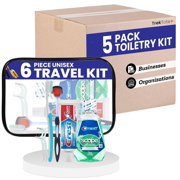 TrekTote Travel Toiletry Kit, 6 Piece Unisex Set, 5 Pack
