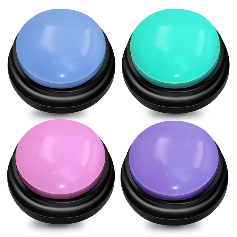 TRELC Dog Button for Communication, 30 Seconds Recordable Button, Pets Training Buzzers, Creative Gift for Kids Learning, Office Game, Pack of 4 (Pink + Green + Blue + Purple)