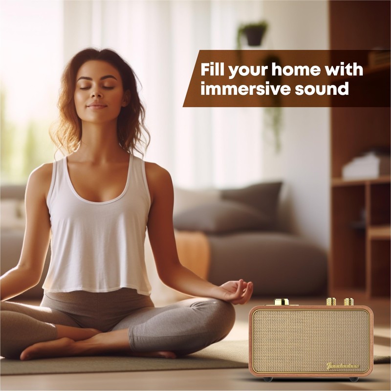 - Retro Bluetooth Speaker—retro styled bluetooth speaker with Retro exquisite knob to help you control the volume. which blends modern technology and retro classic aesthetics, which matches seamlessly with the texture of your wood furniture around your house.