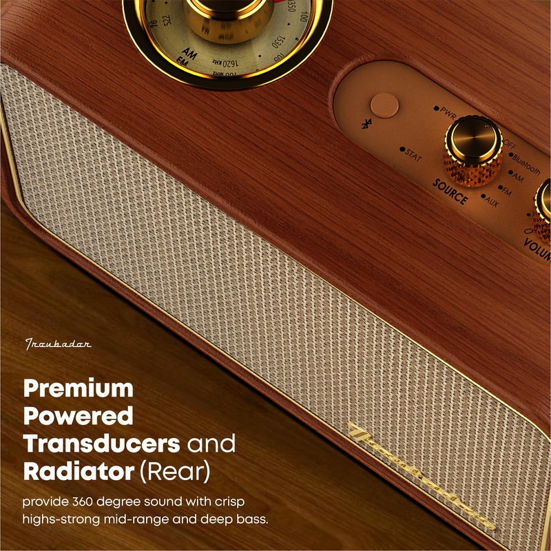 TRENBADER Retro Bluetooth Speaker, Wireless Speaker Walnut Wooden Am/Fm Radio with Bluetooth Connection, Electronic for Home, Vintage Birthday Gift for Dad, (Wood)