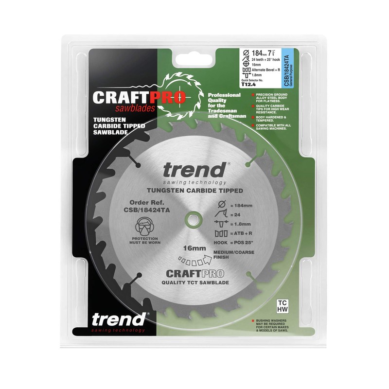 Trend CSB/18424TA Craft Pro Thin Kerf Saw Blade Ideal for DeWalt DCS570N Cordless Circular Saws, 184mm x 24 Teeth x 16 Bore, Tungsten Carbide Tipped