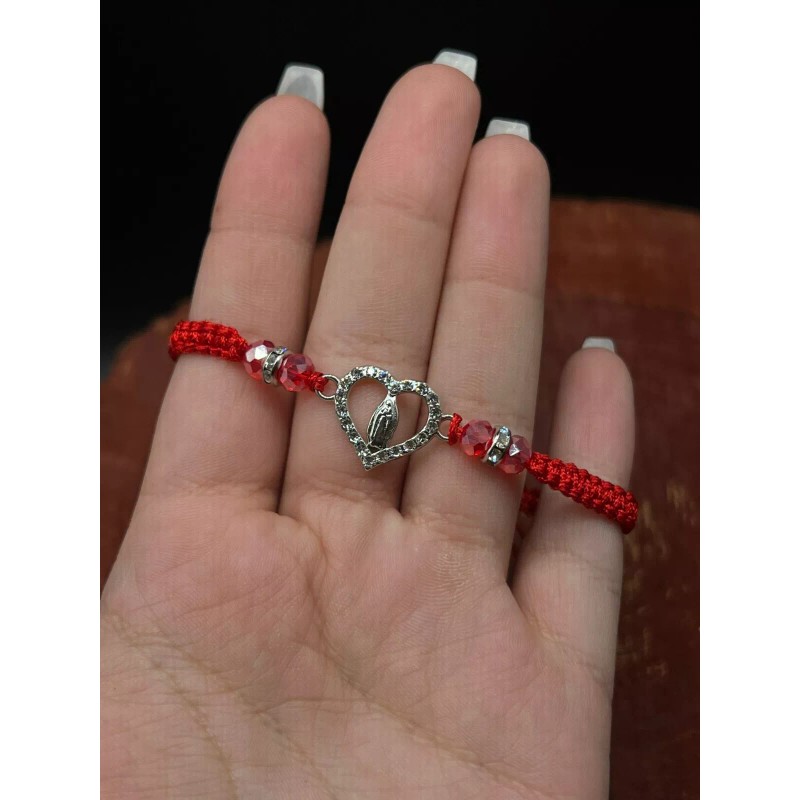 trend Our Lady Of Guadalupe Heart Red String Bead Adjustable Bracelets