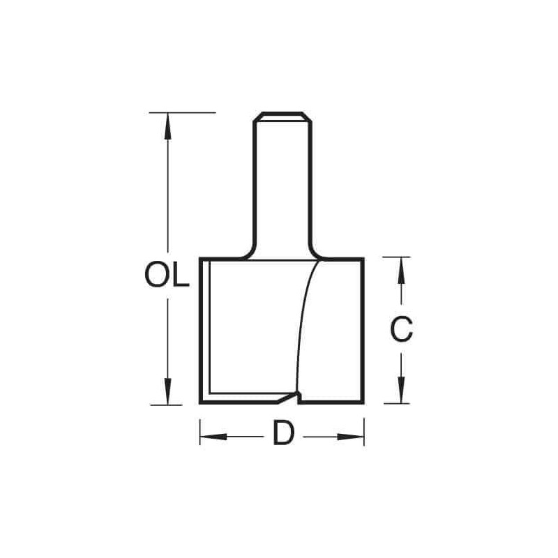 - Two flute gives a clean finish to cut edges. Cutter has a TCT plunge centre tip.