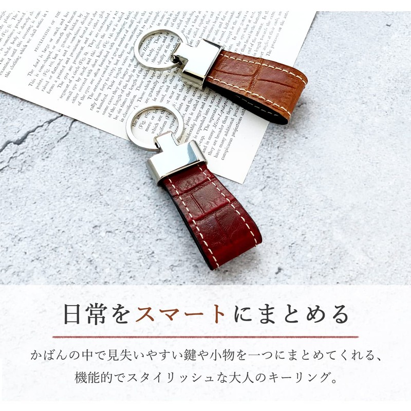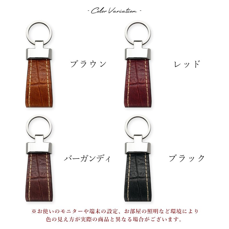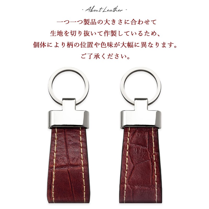 Trend S.S Genuine Leather Smart Key Ring, Crocodile Style, Embossed Key Ring, Men's, Women's, Double Ring, Key, Genuine Leather, Bag Charm, Cowhide Leather, Key Chain, red