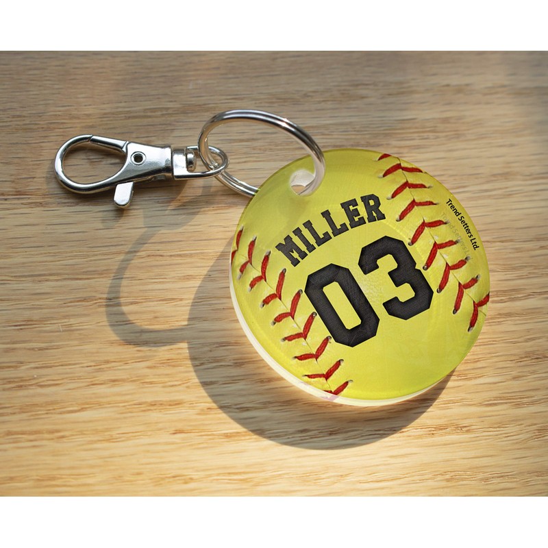 Trend Setters Personalized Softball Keychain - Add Your Name and Jersey Number - 2" Flat Circular-Shaped Acrylic Keychain – Perfect for Athletes and Sports Teams