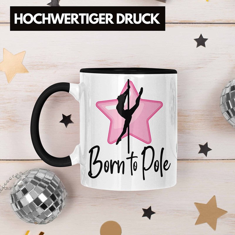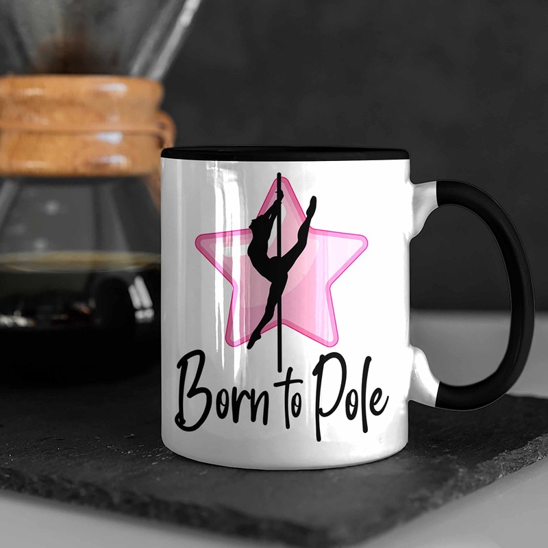 Trendation - Poledance Tasse Geschenk Born To Pole Stangentanz Pole Dance (Schwarz)