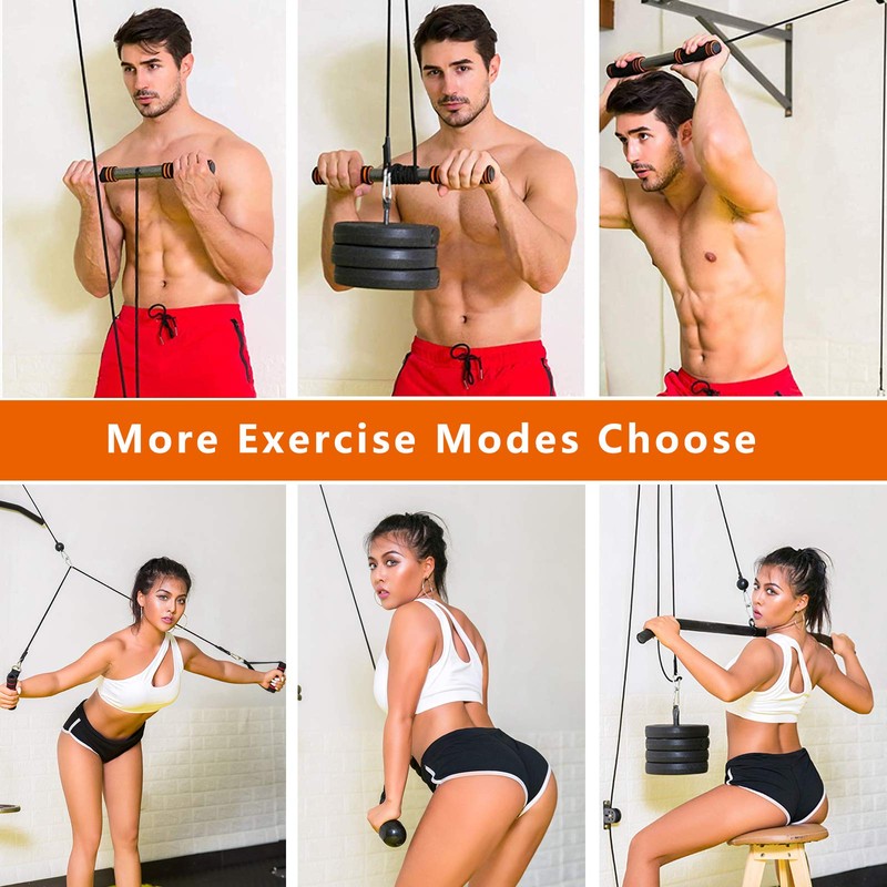 - 【Multiple Functional Pulley System】 - You can get the training of biceps curl, triceps pull down, latitude pull down, LAT pulldowns, extensions fitness workout etc. The detachable handle gives you the freedom to change the accessories you need, as straight rod, tricep rope and handle with foot straps.