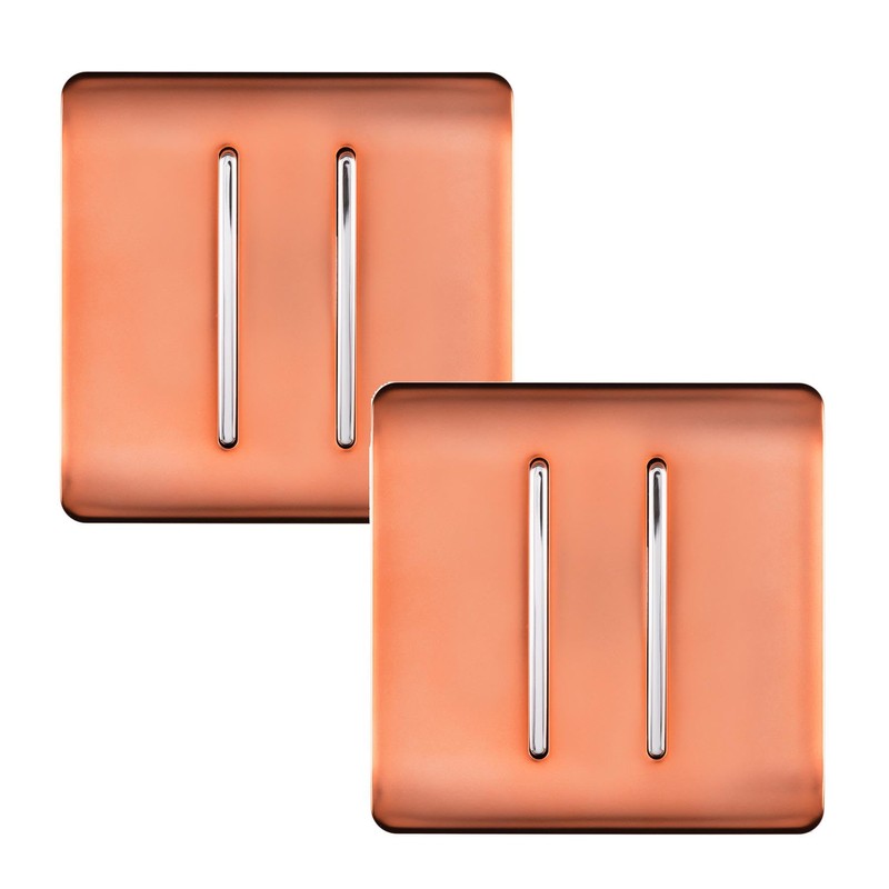 - A COPPER 2 GANG 2 WAY LIGHT SWITCH MADE FROM HIGH QUALITY FIREPROOF ABS PLASTIC: From Trendiswitch, screwless plate with a sleek and modern appearance – making decorating a breeze.