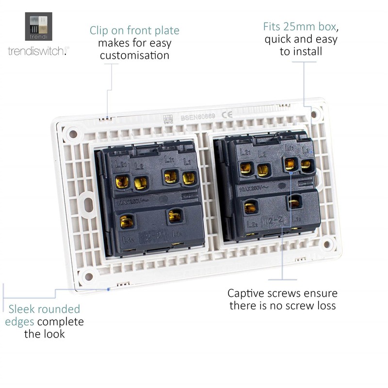 - A STEEL 4 GANG 2 WAY LIGHT SWITCH MADE FROM HIGH QUALITY FIREPROOF ABS PLASTIC: From Trendiswitch, screwless plate with a sleek and modern appearance � making decorating a breeze.