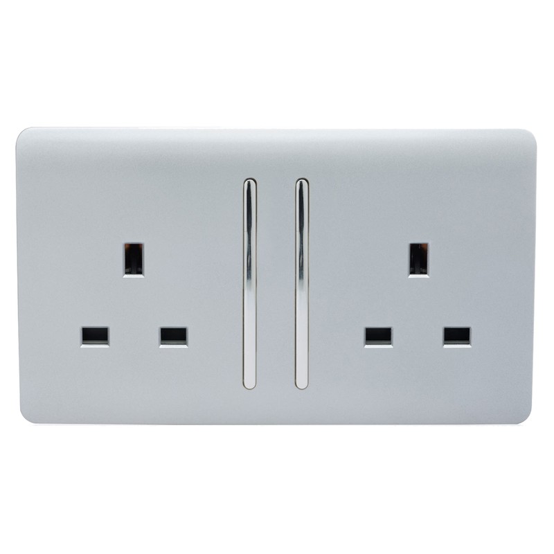 Trendi Switch ART-SKT213LSI Trendi 2 Gang Artistic Modern Glossy Switched Tactile Plug Socket - Silver
