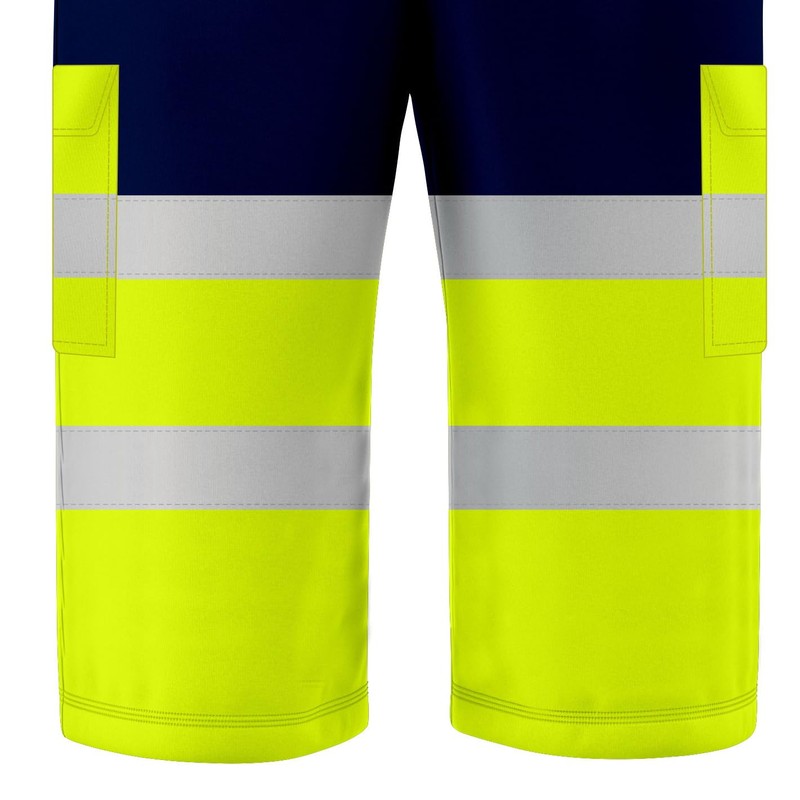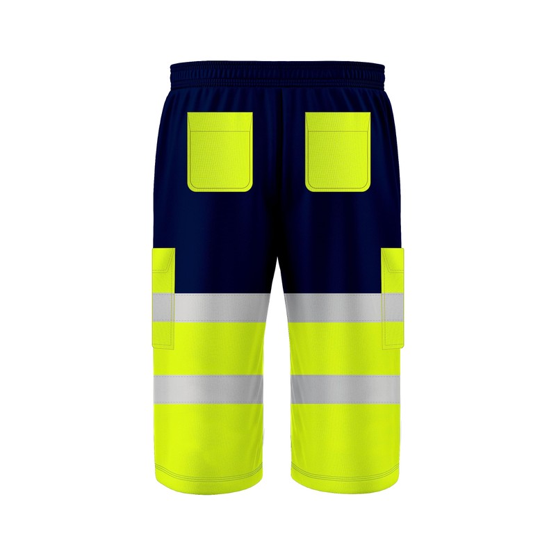 trending babz 3/4 Lenght Hi Viz High Visibility Safety Work Wear Multi Pockets 2 Tone Contrast Drawstring Reflective Tape Fleece Shorts