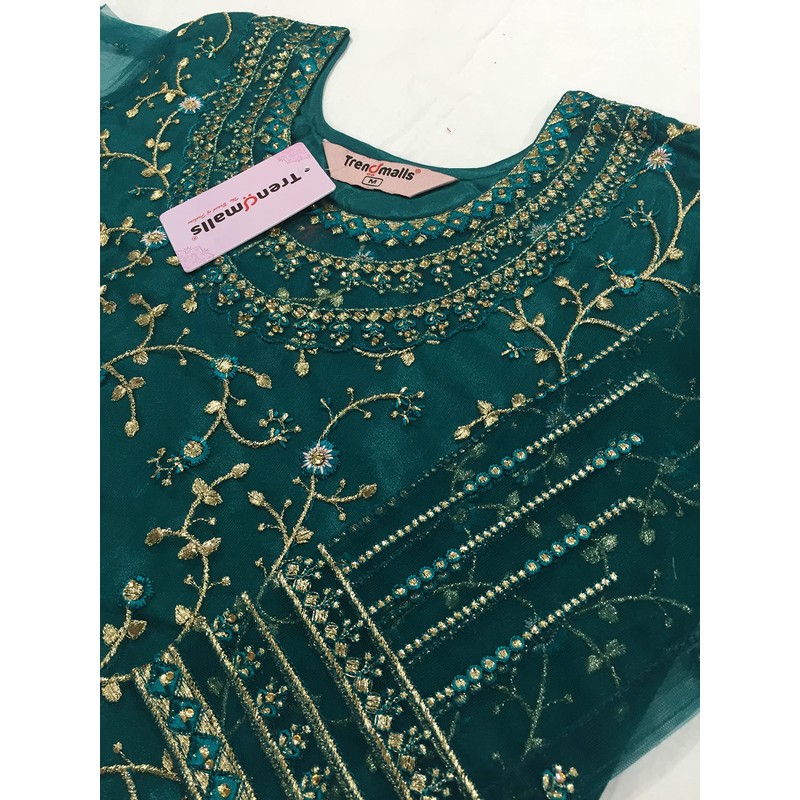 TRENDMALLS Women's Mono Net Kurta Lehenga Suit Set (TM.G112-Morpeach-S) Teal Blue