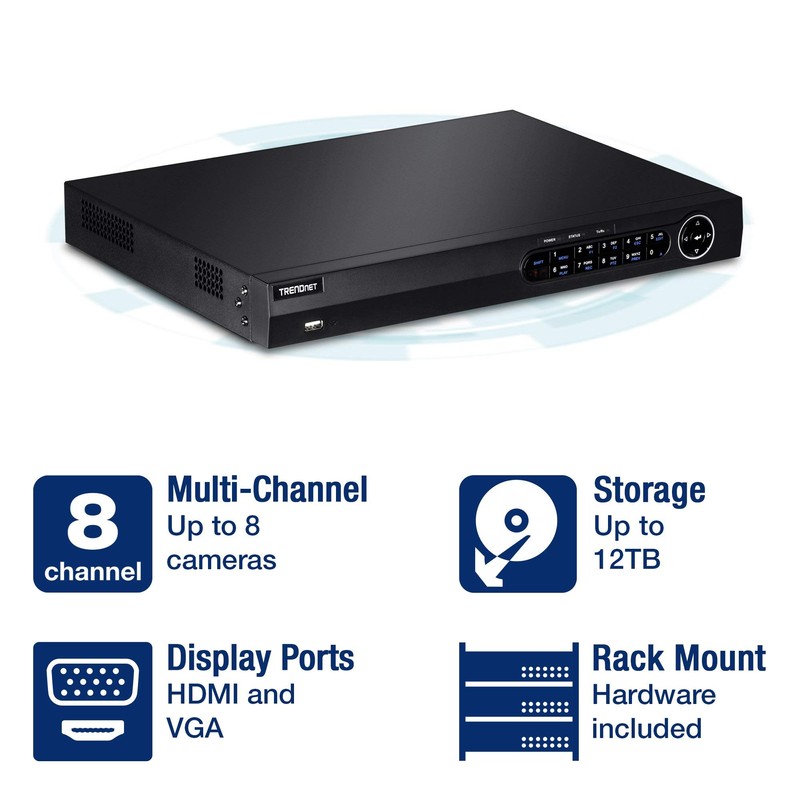 TRENDnet 8-Channel HD Network Video Recorder, 1080p, 2 SATA II Bays, Up to 12 TB Storage, Rack Mountable, Advanced Video Playback, ONVIF, IPv6, Free iOS & Android App, TV-NVR2208 (Renewed)