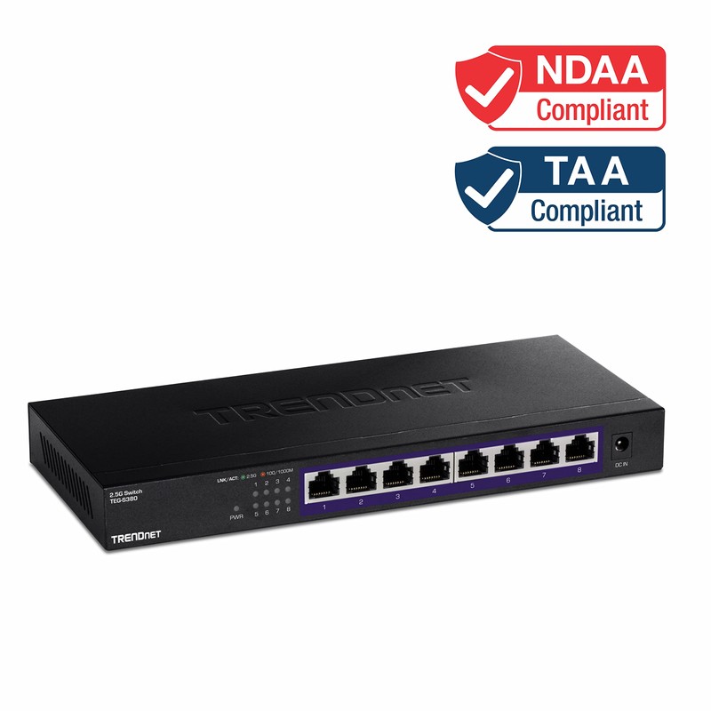 TRENDnet 8-Port Unmanaged 2.5G Switch, 8 x 2.5GBASE-T Ports, 40Gbps Switching Capacity, Backwards Compatible with 10-100-1000Mbps Devices, Fanless, Wall Mountable, Black, TEG-S380 (Renewed)