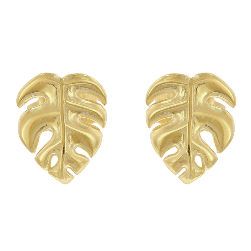 - ELEGANT EARRINGS - Our monster leaf stud earrings are made of high quality gold plated 925 sterling silver.