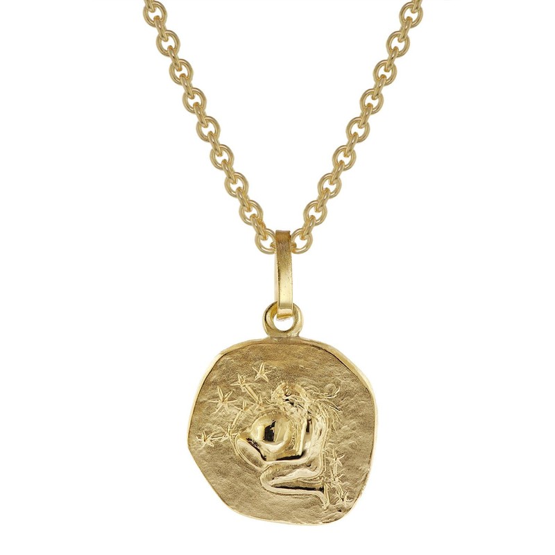 - Aparter zodiac pendant for children in 333 yellow gold/8 carat. Design: Aquarius (21/01-19/02) Pendant diameter: 12 mm. With gold-plated silver chain, 40 cm long, 1.5 mm thick, spring ring clasp
