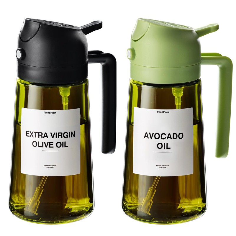 TrendPlain - Original 16oz/470ml Olive Oil Dispenser Bottle for Kitchen Gadgets and Air Fryer Accessories - Olive Oil Sprayer for Cooking w/Stickers - Black&Green
