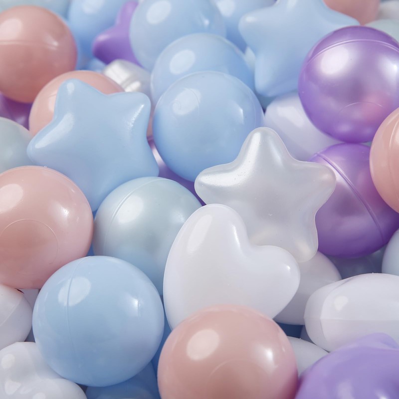 - Vibrant and non-toxic BIGGER star heart ball pit balls for toddlers, promoting safe and colorful play experiences. Available in pack sizes of 200 mix shaped balls, providing ample quantities for engaging ball pit setups. Cream Colors: Pink; Blue; Purple