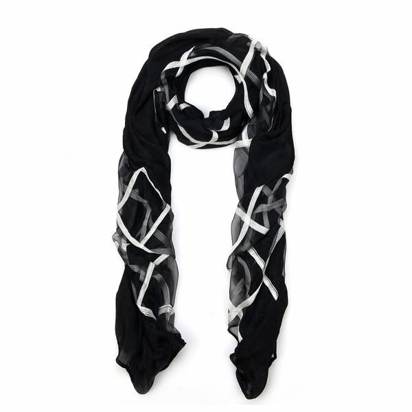 TrendsBlue Premium 2-Layer Viscose Plaid Scarf, Black