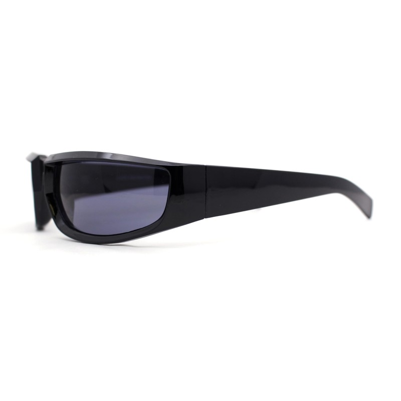 Trendy 90s Sport Look Curved Wrap Fashion Sunglasses All Black