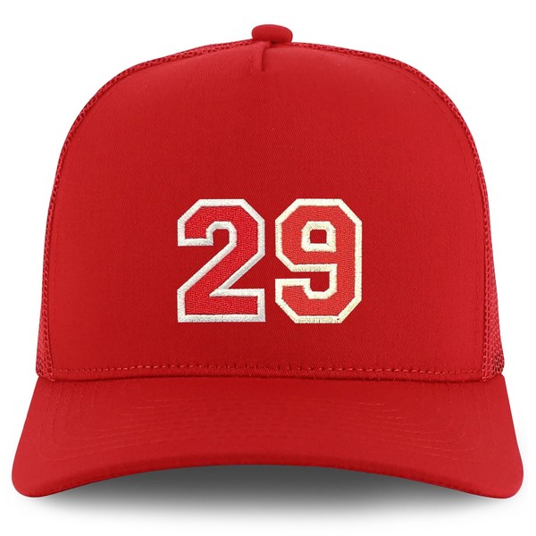 Trendy Apparel Shop Number 29 Varsity Font Embroidered 5 Panel Structured Snapback Cap - Red