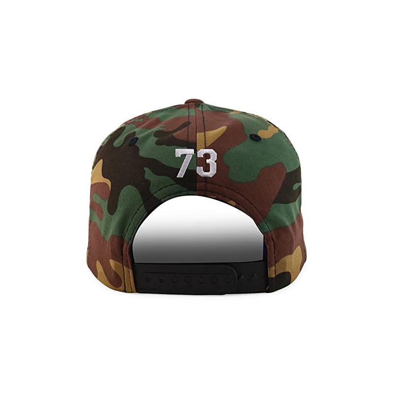 Trendy Apparel Shop Small Number 73 Back Embroidered Flatbill Snapback - Camo