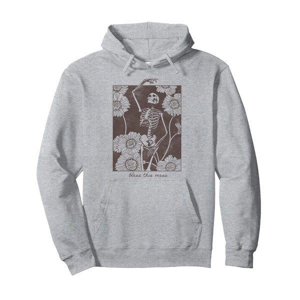 Trendy Bless This Mess Vintage Skeleton Daisy Square Pullover Hoodie